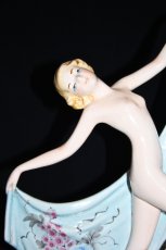 Art Deco Tall Nude Scarf Dancer By Goldscheider Vienna on Diamond Shaped Base