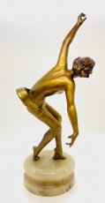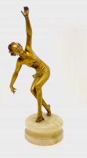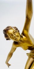 A beautiful poser dancing in full swing, she is a metal sculpture has the original golden patina